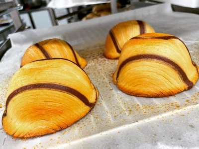 - De la pâtisserie élaborée avec: + Des oeufs élevés en plein air + Du beurre qui provient de la fromagerie chabert + De la crème pâtissière avec de la GOUSSE de vanille